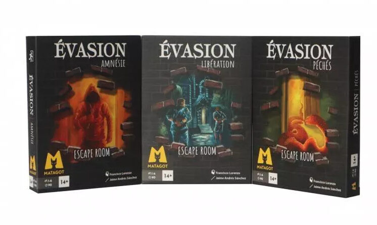La gamme Évasion est une série d’escape games éditée par Matagot. Elle est conçue pour plonger les joueurs dans des scénarios intenses qui va au-delà de la simple résolution d’énigmes pour intégrer des éléments de narration sombre, de gestion de personnages et de conséquences permanentes.