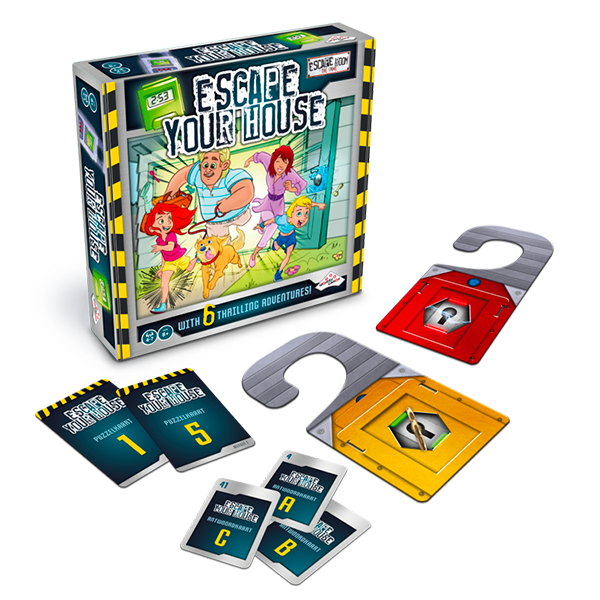 Escape Your House est un jeu indépendant dans la gamme Escape Room Le Jeu, car il ne s’agit pas d’un scénario pré-écrit avec des énigmes fixes. Il s’agit plutôt d’un kit créatif qui permet aux enfants (et à leurs parents) de créer leur propre escape game directement dans leur maison ! La Puissante et Secrète Spy Team (PSST) est une organisation qui protège le monde en recrutant des personnes capables de passer inaperçues, comme une famille innocente ou un groupe d’amis sympathiques. Elle propose six missions palpitantes où vous devez vous échapper de votre maison en 15 minutes. Pour réussir, vous devez travailler ensemble afin de résoudre des énigmes et trouver la clé du verrou de la porte. De 3 à 6 dès 8 ans.