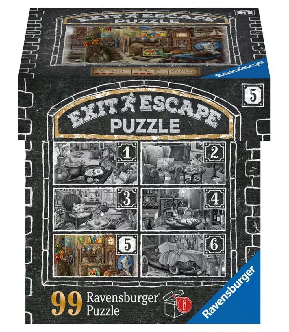 Plongez dans un nouvel univers rempli de mystères grâce aux Escape puzzles 99 pièces de Ravensburger. Arpentez la cuisine de ce manoir hanté, trouvez les indices dissimulés et résolvez les énigmes qui vous permettront de remporter votre mission. La résolution des énigmes permet d’identifier les coordonnées sur le bord du puzzle, qui vous permettront de trouver la solution finale. Pièce après pièce, dirigez-vous vers la victoire de cette histoire palpitante et immersive.