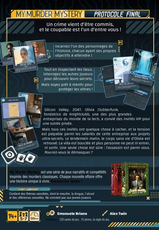 My Murder Mystery propose des Murder Parties clés en main et sans maître de jeu, où chaque joueur incarne un suspect qui doit bluffer pour protéger ses secrets tout en enquêtant pour démasquer le coupable qui se cache parmi vous.