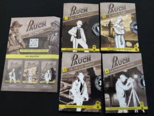 Les Enquêtes de Pauch Le jeu est édité par La Cape Noire, une maison d’édition qui produit ses jeux à 100% en France et qui a transformé une erreur d’impression technique en un concept signature qu’ils appellent affectueusement leur « Tarte Tatin ».